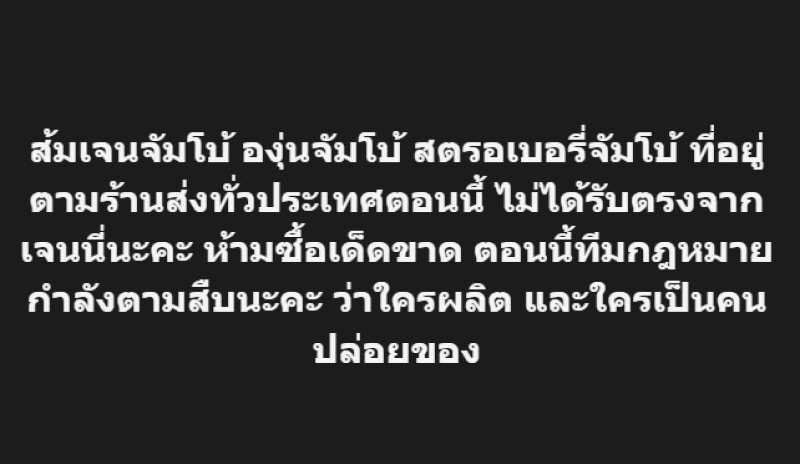ซึ่ง เจนนี่ ได้ออกมาประกาศจุดยืนอย่างชัดเจนว่า ธุรกิจของเธอ ไม่มีระบบขายส่ง และไม่เคยแต่งตั้งตัวแทนจำหน่ายใดๆ พร้อมเตือนผู้บริโภคให้ระมัดระวังในการเลือกซื้อสินค้า