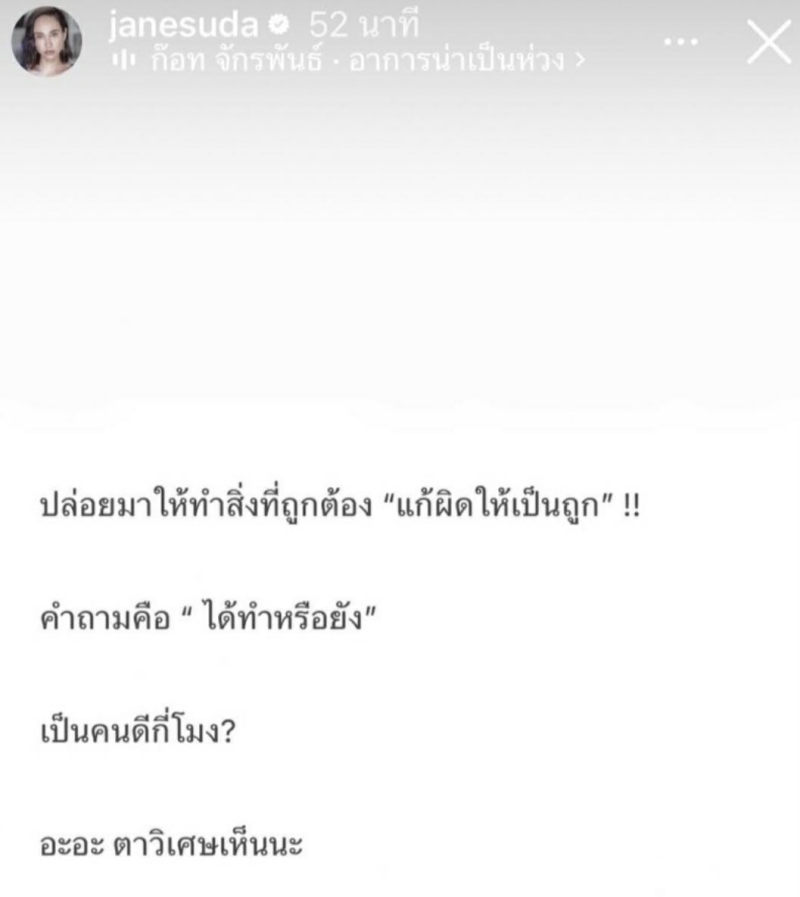 เรียกได้ว่า โลกออนไลน์กลับมาคึกคักอีกครั้ง หลัง เจน เจนสุดา ปานโต โพสต์ข้อความผ่านไอจีสตอรี่ในลักษณะชวนให้ตีความ พร้อมถ้อยคำที่ฟังดูเหมือนการสะท้อนถึงพฤติกรรมของใครบางคน