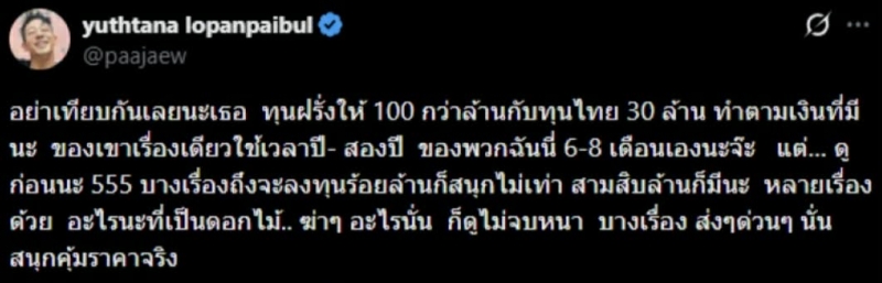 ท้ายที่สุด ผู้กำกับคนดัง ฝากมุมคิดว่า การตัดสินคุณภาพ ไม่ควรยึดเพียงตัวเลขงบสร้าง เพราะความสนุก และความประทับใจของผู้ชมต่างหาก คือเครื่องชี้วัดความสำเร็จที่แท้จริง