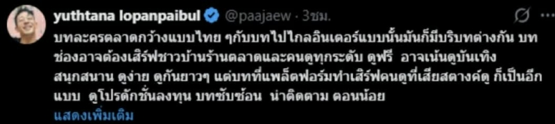 เรียกได้ว่า เป็นประเด็นที่ถูกพูดถึงไม่น้อย เมื่อผู้กำกับมากประสบการณ์ ยุทธนา ลอพันธุ์ไพบูลย์ ออกมาแสดงความคิดเห็นผ่านโซเชียล หลังเห็นนักแสดงจากช่อง 3 หลายคนมีผลงานบนแพลตฟอร์มระดับโลกอย่าง Netflix