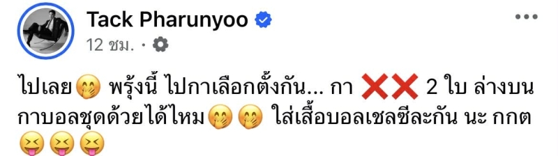 เรียกได้ว่า สร้างสีสันก่อนวันเข้าคูหาได้แบบไม่ธรรมดา เมื่อ แทค ภรัณยู ปล่อยภาพสุดแหวกแนวลงโซเชียล เรียกเสียงฮือฮาจากแฟนๆ ทันที