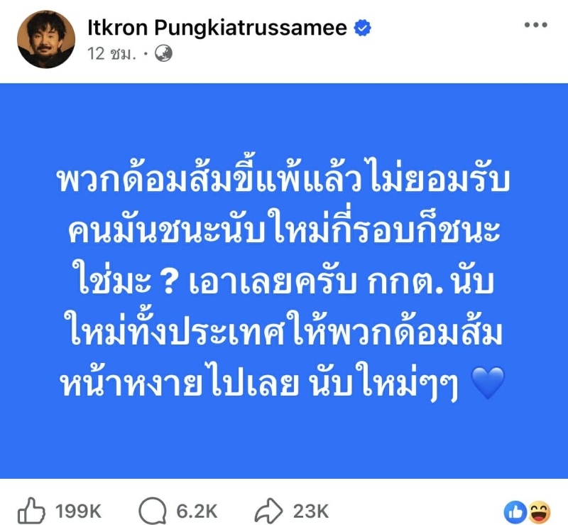 โดย เจ้าตัว สื่อสารในเชิงท้าทายว่า หากจะนับคะแนนใหม่ก็สามารถทำได้ เพราะเชื่อว่า ผลจะไม่เปลี่ยนแปลง พร้อมพาดพิงถึงกลุ่มผู้สนับสนุนบางฝ่ายอย่างชัดเจน