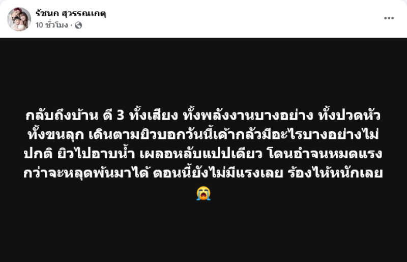 ทำเอาแฟนคลับถึงกับต้องเข้ามาส่งกำลังใจและเป็นห่วงกันอย่างมากสำหรับ เจนนี่ ได้หมดถ้าสดชื่น หรือ รัชนก สุวรรณเกตุ ที่ได้ออกมาโพสต์เล่าเรื่องราวชวนขนลุกในเวลากลางดึกว่า กลับถึงบ้าน ตี 3 ทั้งเสียง ทั้งพลังงานบางอย่าง ทั้งปวดหัว ทั้งขนลุก เดินตามยิวบอกวันนี้เค้ากลัวมีอะไรบางอย่างไม่ปกติ ยิวไปอาบน้ำ เผลอหลับแปปเดียว โดนอำจนหมดแรง กว่าจะหลุดพ้นมาได้ ตอนนี้ยังไม่มีแรงเลย ร้องไห้หนักเลย