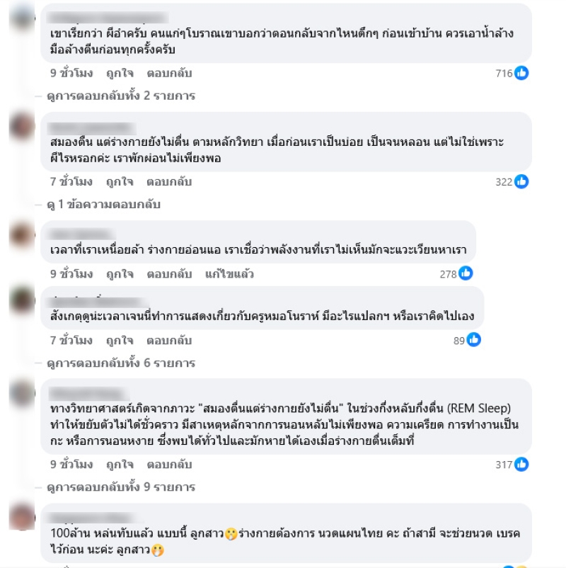 อาการคือ โดนทับยกแขนขาไม่ได้ หนักตัว มีมวลเสียงอัดในหูแรงมาก ตะโกนเรียกคนในบ้านสุดเสียงไม่มีใครได้ยิน สวดนะโม 3 จบ ไล่ออกไปแบบแรงๆหลายรอบมากกว่าจะหลุด พอรู้ตัวว่าหลุดแล้ว โคตรหมดแรง รีบเรียกยิวให้มาช่วย พอยิวมาร้องไห้เกือบแล้ว