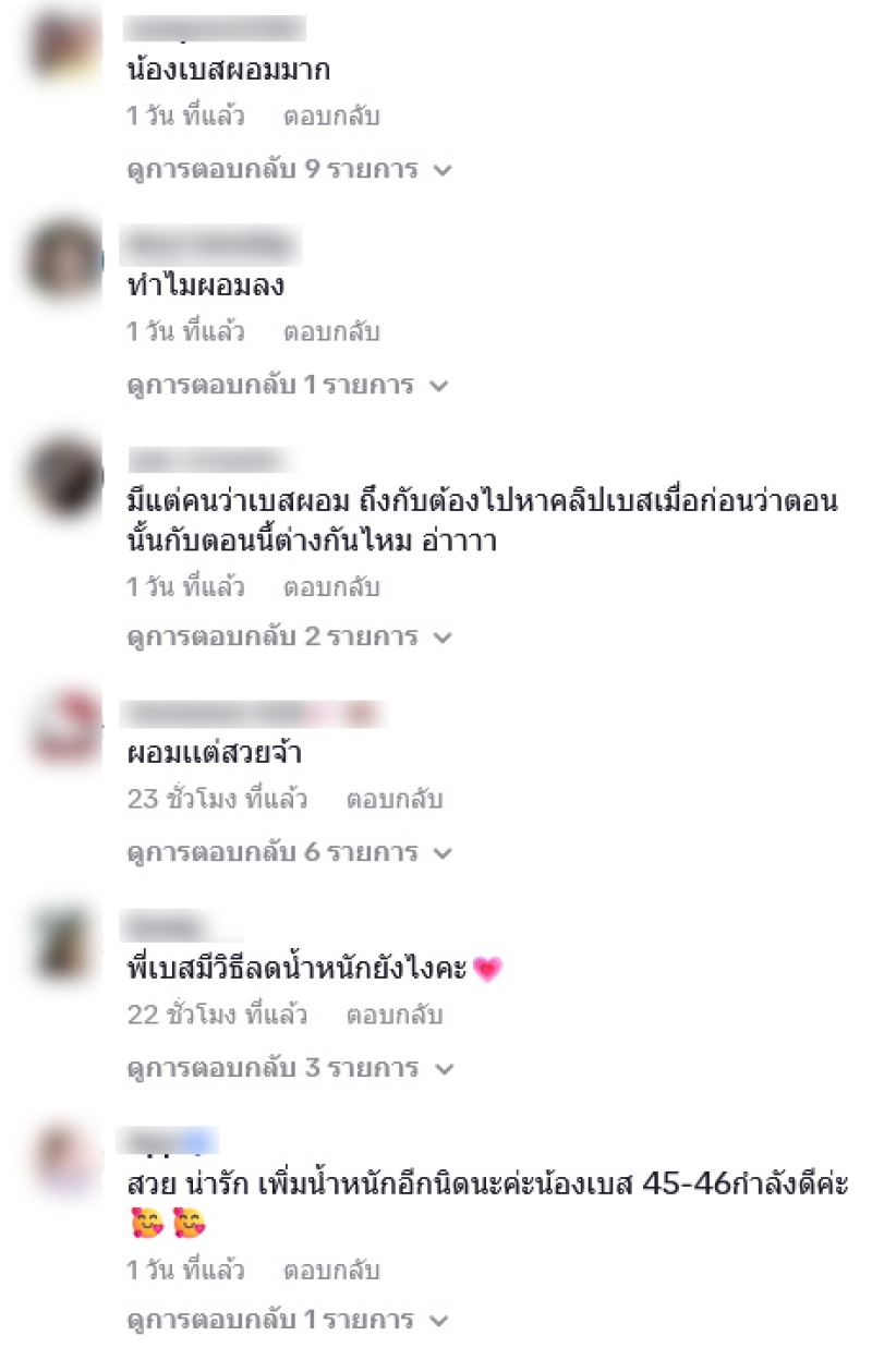 อาทิ ทำไมผอมลง,มีแต่คนว่าเบสผอม ถึงกับต้องไปหาคลิปเบสเมื่อก่อนว่าตอนนั้นกับตอนนี้ต่างกันไหม อ่า,น้องเบสผอมยาวไป เพิ่มน.น อีกนิด จะสวยมากๆ,ผอมมากกก ช่วงเอวยาวมากกก เปิดมาตกใจนึกว่าฟิวเตอร์,ผอมมาก นึกว่าพี่ใหม่ ดาวิกา