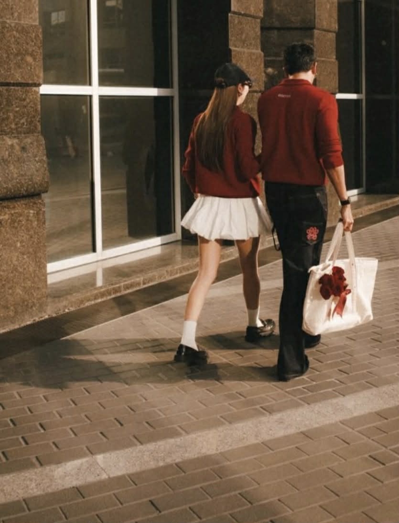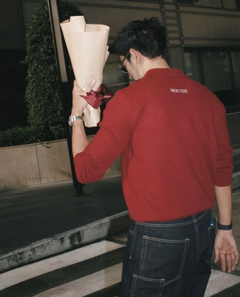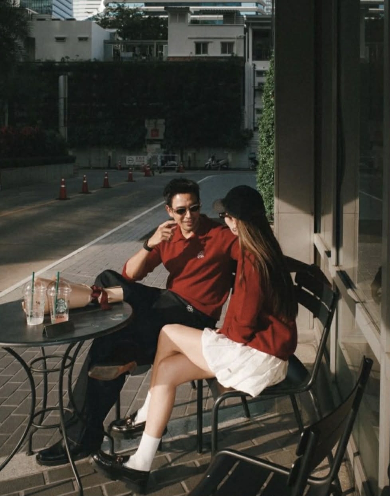 ในภาพทั้งคู่มาในลุคโทนสีแดง มีทั้งโมเมนต์ถือดอกกุหลาบ เดินเคียงข้าง และนั่งคุยกันแบบใกล้ชิด ทำเอาหลายคนตั้งคำถามว่า นี่คือการเปิดตัวความสัมพันธ์หรือไม่