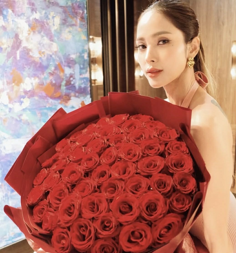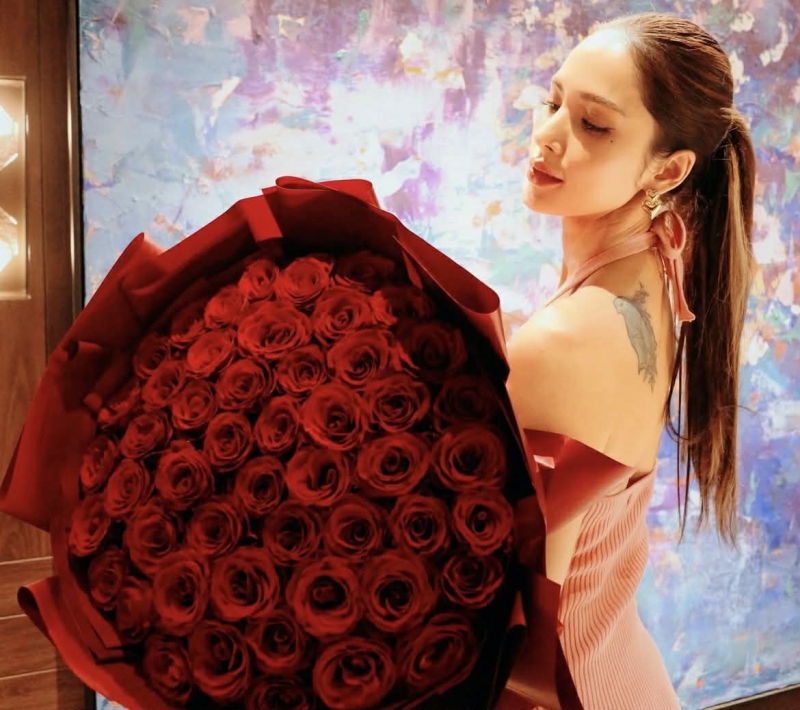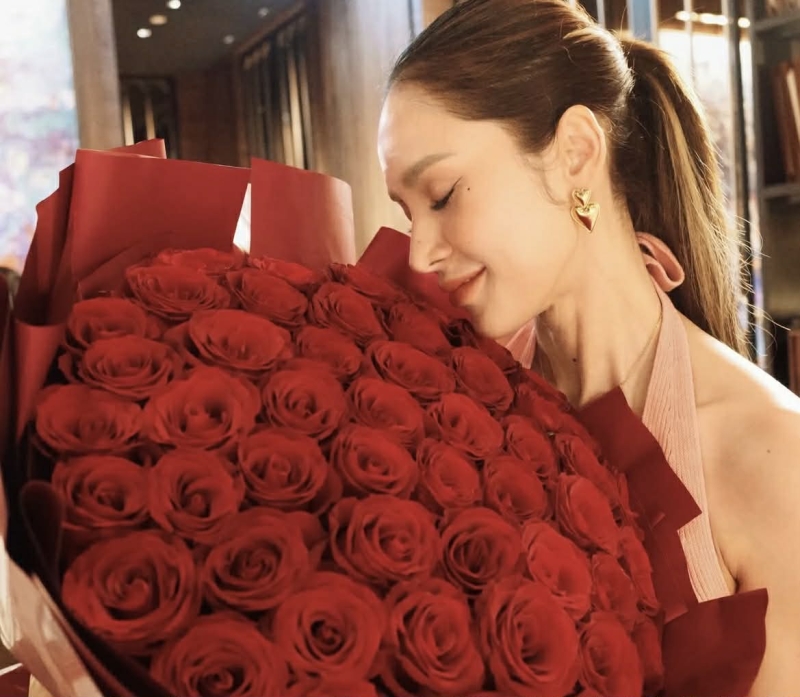 ในวันวาเลนไทน์ที่ผ่านมา เจ้าตัว แชร์ภาพถือดอกกุหลาบสีแดงช่อใหญ่ บรรยากาศละมุนชวนฝัน