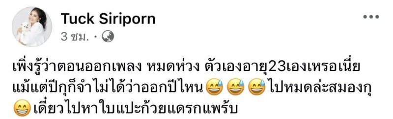 ไม่นานก็มีคำตอบ เมื่อเจ้าของภาพคือ ตั๊ก ศิริพร อยู่ยอด ศิลปินรุ่นใหญ่ที่แฟนเพลงคุ้นเคยกันดี โดยเจ้าตัวนำภาพสมัยวัย 23 ปีมาโพสต์เอง พร้อมข้อความแซวตัวเองแบบอารมณ์ดี ทำเอาแฟนๆ เข้ามาคอมเมนต์กันรัวๆ