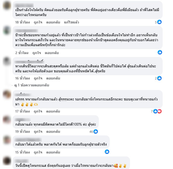 อาทิ มีแต่คนรักทนายแก้วทั้งนั้นเลยแกนิสัยดีกว่าทนายบางคนอีก,รอดูทนายในโหนกระแสนะครับ กลับมาทำงานได้แล้วครับ,โหนกระแส ต้องมีทนายแก้วถึงจะสนุกครบรส ค่ะ สู้ๆ นะคะ,ในที่สุดทนายแก้วก็ลุกขี้นอีกครั้ง