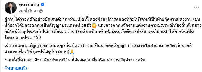 ห่างหายจากโซเชียลเเละหน้าจอไปนานสำหรับ ทนายแก้ว ดร.มนต์ชัย ล่าสุดทนายแก้วได้กลับมาเคลื่อนไหวผ่านทางเฟซบุ๊คอีกครั้งโดยโพสต์ให้ความรู้เรื่องข้อกฎหมาย งานนี้ทำเอาแฟนๆต่างเข้ามาคอมเมนต์คิดถึงกันอย่างมาก