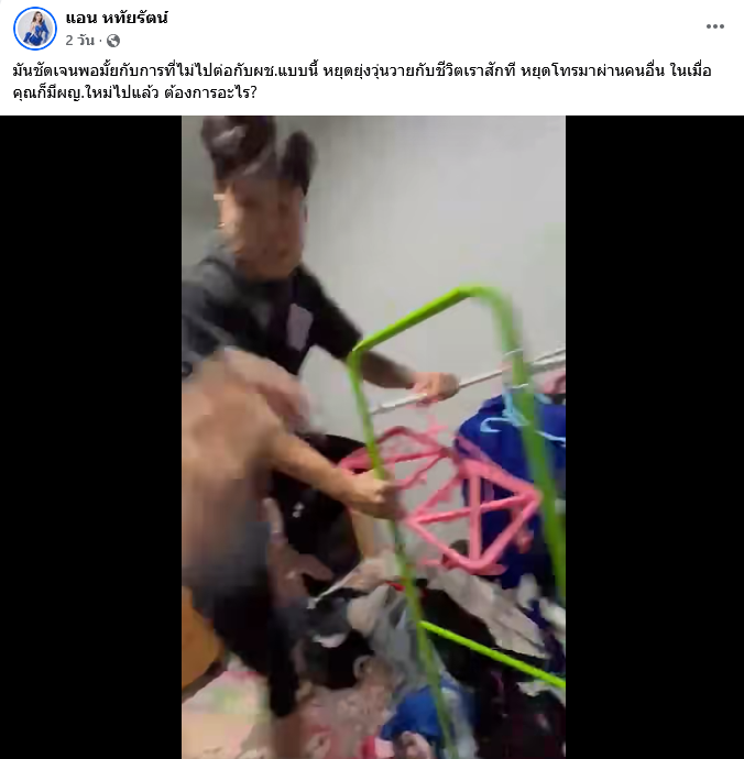 ฝ่ายแอน ออกมาโพสต์ข้อความเชิงตัดพ้อและปกป้องตัวเอง ระบุว่า ขอให้อีกฝ่ายหยุดการกระทำที่สื่อถึงการดูถูกเหยียดหยาม ทั้งต่อเธอและร้านที่เธอทำงาน พร้อมตั้งคำถามถึงความเป็นลูกผู้ชาย และย้ำว่าที่ผ่านมาตนเองเงียบมาตลอด แต่ครั้งนี้ “ไม่ไหวจริงๆ” หลังมีการโพสต์แซะทำนองว่า “ไปร้องเพลงหรือไปขายอะไรคะหนู?” ก่อนจะลบโพสต์ภายหลัง