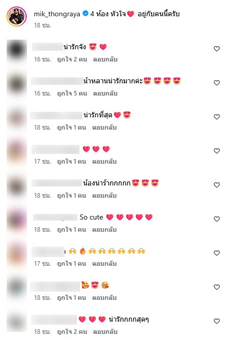 ทั้งนี้ล่าสุดในอินสตาแกรมของหนุ่มมิกค์ ได้ลงภาพคู่ น้องพราวตะวัน หลานสาวคนโปรด พร้อมแคปชั่นสั้นๆ แต่ละมุนมากว่า 4 ห้อง หัวใจ อยู่กับคนนี้ครับ ทำเอาแฟนๆต่างชื่นชมความน่ารักกันอย่างมาก