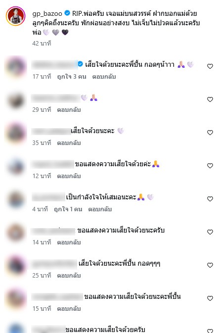 RIP พ่อครับ เจอแม่บนสวรรค์ฝากบอกแม่ด้วยลูกคิดถึงนะครับ พักผ่อนอย่างสงบไม่เจ็บไม่ปวดแล้วนะครับพ่อ โดยมีกำหนดสวดอภิธรรมวันที่ 2 มีนาคมนี้ ณ วัดศรีเอี่ยม บางนา ศาลา4