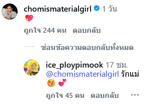 โดยโพสต์ล่าสุดในอินสตาแกรมของ ไอส์ ได้โพสต์อำลาอย่างเป็นทางการ โดยมีเหล่าคนในวงการต่างเข้ามาคอมเมนต์กันอย่างมาก รวมทั้ง ชมพู่ อารยา ได้เข้ามาคอมเมนต์สั้นๆด้วยอิโมจิหัวใจ