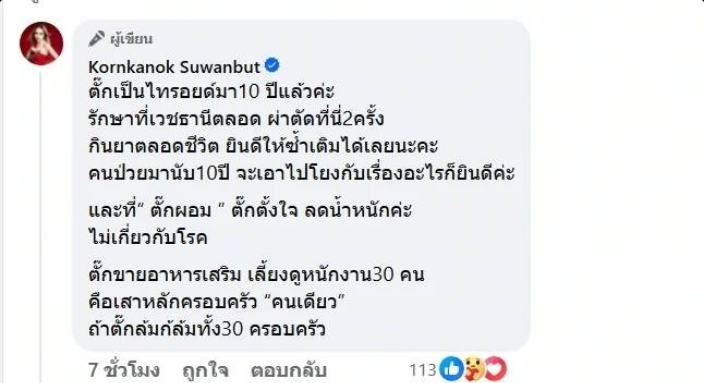 รักษาที่เวชธานีตลอด ผ่าตัดที่นี่2ครั้ง กินยาตลอดชีวิตที่ตั๊กผอม ตั๊กตั้งใจ ลดน้ำหนักค่ะ ไม่เกี่ยวกับโรคตั๊กขายอาหารเสริม