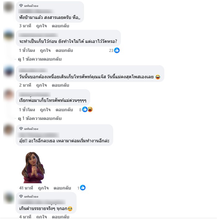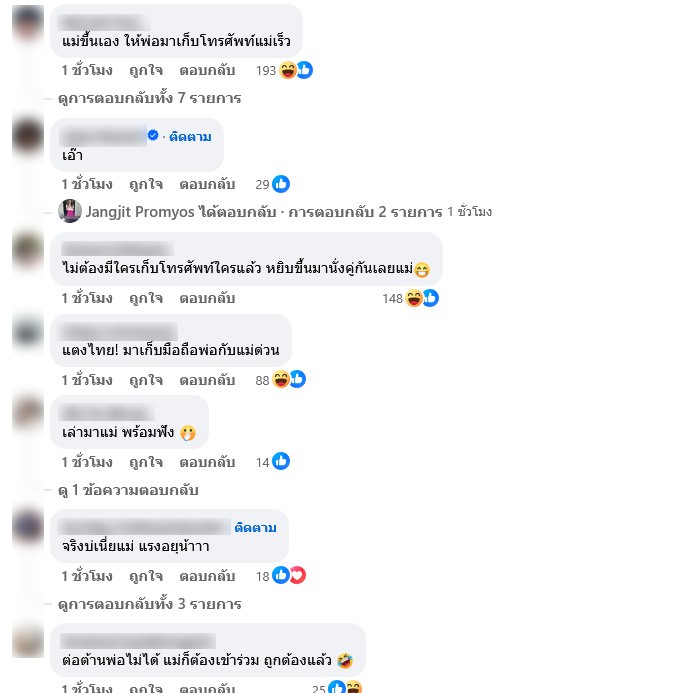 งานนี้ทำเอาชาวเน็ตต่างเข้ามาคอมเมนต์ตั้งตารอกันอย่างมาก อาทิ แม่ขึ้นเอง ให้พ่อมาเก็บโทรศัพท์แม่เร็ว,แตงไทย! มาเก็บมือถือพ่อกับแม่ด่วน,เล่ามาแม่ พร้อมฟัง,จริงบ่เนี่ยแม่ แรงอยุน้าาา,ฟังป๋ามาแล้ว สงสารเลยครับ หือ