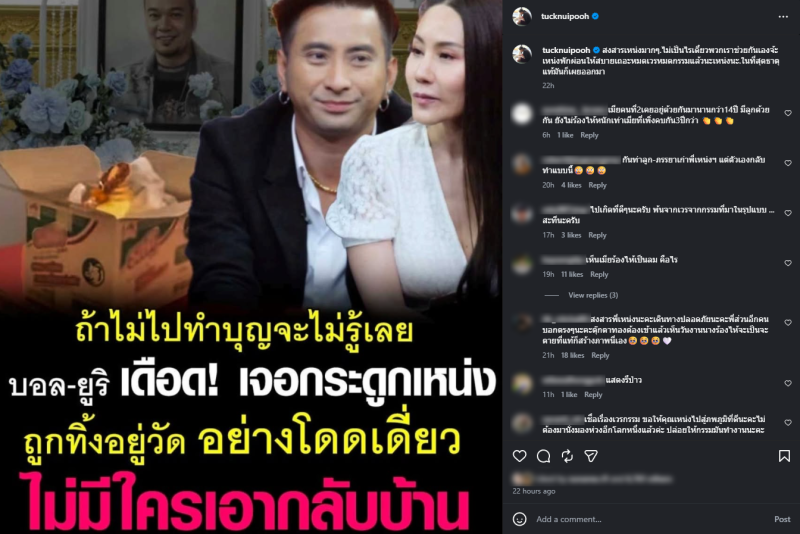 เรียกได้ว่า เป็นประเด็นร้อนขึ้นมาเมื่อทาง บอล เชิญยิ้ม และภรรยา ยูริ ไปทำบุญให้กับ เหน่ง เหม่งจ๋าย แต่กลับเจอเรื่องอัฐิ ของ เหน่ง เหม่งจ๋าย ยังวางไว้ที่ห้องเก็บของทางวัด ทำให้มีประเด็นดรม่าสนั่นวงการตลกเลยก็ว่า ล่าสุด ทาง ตั๊ก ศิริพร ก็เดือดไม่แพ้กัน ได้ออกมาโพสต์ว่า สงสารเหน่งมากๆ.ไม่เป็นไรเดี๋ยวพวกเราช่วยกันเองจ้ะเหน่งพักผ่อนให้สบายเถอะหมดเวรหมดกรรมแล้วนะเหน่งนะ.ในที่สุดธาตุแท้มันก็เผยออกมา