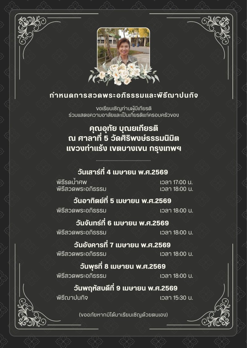 พิธีฌาปนกิจ วันพฤหัสบดีที่ 9 เมษายน พ.ศ.2569 เวลา 15.30 น.