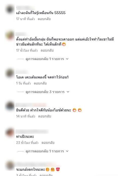 ท่ามกลางแฟนๆต่างเข้ามาคอมเมนต์แซวกันอย่างมาก อาทิ xูไปอยู่ไหนมา,ไอซ์ไม่ขึ้นกล้องอ่ะ ตัวจริงคือโคตรน่ารัก,แล้วหน้าคล้ายกัน น่ารักเกิ้น,ต่อมสาววายฉันกรี๊ดรอละฟังเพลงเขาตั้งแต่วัยรุ่นจนตอนนี้37ยังรักชื่นชอบเหมือนเดิม