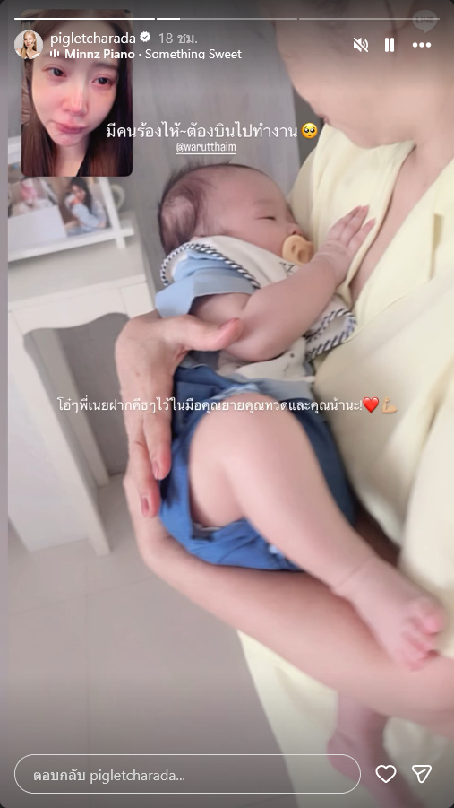 โดยทางด้าน พิกเล็ท ชาราฎา ได้ออกมาโพสต์ภาพขณะที่ เนย กำลังนั่งหน้าแดงน้ำตาไหลพราก ขณะวิดีโอคอลคุยกับน้องคีธที่คิดถึงลูกชายจนกลั้นน้ำตาไม่อยู่