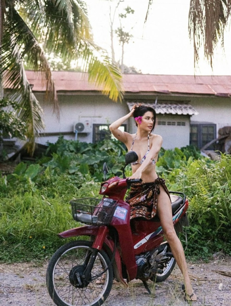 โดย ไฮไลต์อยู่ที่ลุคสุดปังของเธอ ที่มาในชุดบิกินี่ดีไซน์เก๋ แมตช์กับผ้าถุง เพิ่มความเป็นเอกลักษณ์ เผยเสน่ห์แบบพอดีๆ แต่ดึงดูดทุกสายตาได้แบบไม่ต้องพยายาม