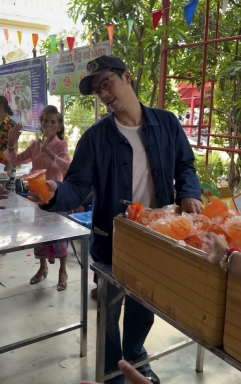 โดย พีชเอง ลงมือแจกของอย่างตั้งใจ ไม่ถือตัวแม้แต่น้อย ขณะที่คุณแม่ก็คอยช่วยดูแลอย่างใกล้ชิด สะท้อนความผูกพันของครอบครัวได้อย่างชัดเจน