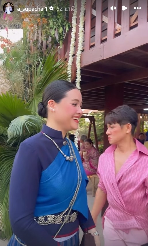 ทั้งนี้ทำเอาหลายคนคนหลุดโฟกัสที่ แคท เสปอร์บันด์ พี่สาวของ ญาญ่า ที่สวยไม่แพ้น้องสาวเลยทีเดียว พี่แคทในชุดไทยห่มสไบสีน้ำเงินดูหวานละมุนและมีจริตที่อ่อนช้อยมาก รอยยิ้มที่สดใสสะท้อนถึงความดีใจอย่างที่สุดที่ได้เห็นน้องสาวสุดที่รักเป็นฝั่งเป็นฝา