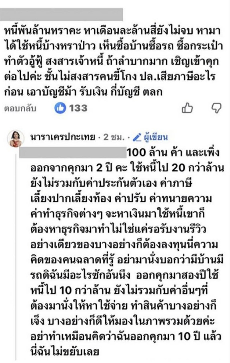 นอกจากนี้ นารา ยังเปิดใจถึงกระแสวิจารณ์เรื่องการใช้ชีวิต ยืนยันบางอย่างเป็นการให้กำลังใจตัวเองระหว่างสู้ปัญหา ขณะเดียวกัน ก็ยังเร่งวางแผนสร้างรายได้จากหลายช่องทาง เพื่อเป้าหมายปลดหนี้ให้เร็วที่สุด