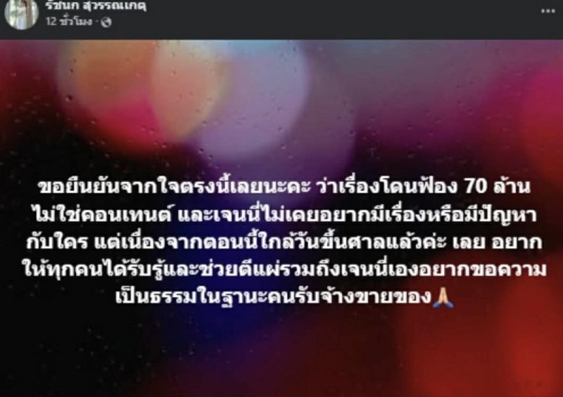 อีกทั้ง เจ้าตัว ยังเผยว่า ที่ผ่านมาเก็บเรื่องนี้เงียบมาระยะหนึ่ง แต่เลือกออกมาพูดตอนนี้ เพื่อขอความเป็นธรรมให้ตัวเอง และอยากให้กรณีนี้เป็นอุทาหรณ์สำหรับผู้ที่รับงานรีวิว หรือ ขายสินค้าในอนาคต