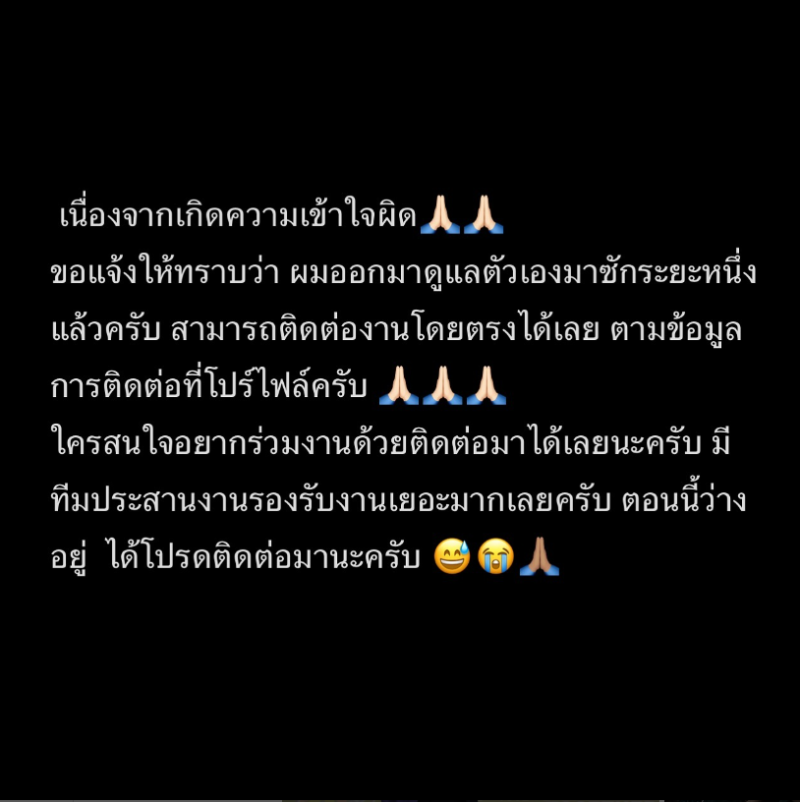 เมื่อวันที่ 22 พ.ค. 67 ทาง อองตวน ปินโต ดารา-นักมวยชื่อดัง ได้ออกมาโพสต์ว่า เนื่องจากเกิดความเข้าใจผิด ขอแจ้งให้ทราบว่า ผมออกมาดูแลตัวเองมาซักระยะหนึ่งแล้วครับ สามารถติดต่องานโดยตรงได้เลย ตามข้อมูลการติดต่อที่โปรไฟล์ครับ