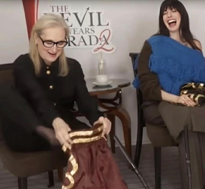 เฉพาะ Meryl Streep ที่ถึงกับร้องว้าว หยิบกางเกงขึ้นมาลองทาบตัวทันทีแบบอารมณ์ดี แม้จะเกิดช็อตขำๆ ใส่ผิดด้านจนทุกคนในงานหลุดหัวเราะ แต่ก็กลายเป็นโมเมนต์น่ารักที่ถูกพูดถึงอย่างรวดเร็ว