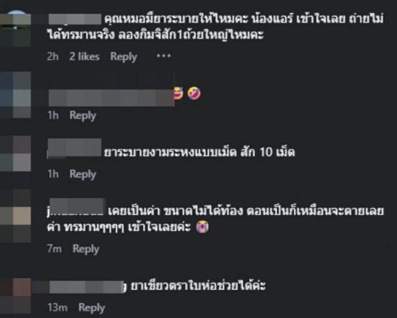 พร้อมกันนี้ ยังระบายความรู้สึกว่า ความทรมานดังกล่าว คนที่ไม่เคยเผชิญจะไม่เข้าใจ ทำเอา เจ้าตัว ถึงกับนั่งทรุดในห้องน้ำ เพราะความเจ็บปวด และ อึดอัด