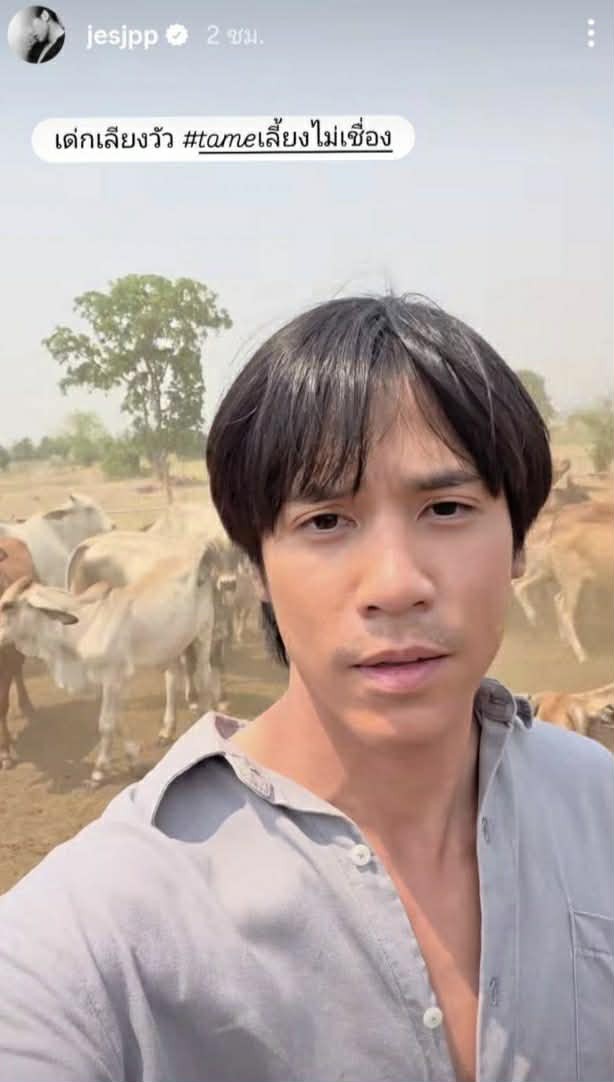ครั้งนี้ เจ้าตัว สลัดภาพหนุ่มหล่อเนี้ยบจากหน้าจอ เปลี่ยนมาเป็นลุคบ้านๆ สวมบทเด็กเลี้ยงวัวแบบจัดเต็ม ทั้งเสื้อผ้าหม่นๆ และลุคที่ดูผ่านงานหนักกลางแดด