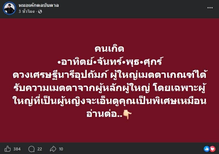จุดเด่น คือ จะมีผู้ใหญ่ให้ความเมตตาเป็นพิเศษ ทำให้หลายอย่างที่ติดขัดเริ่มคลี่คลายไปในทางที่ดีขึ้น