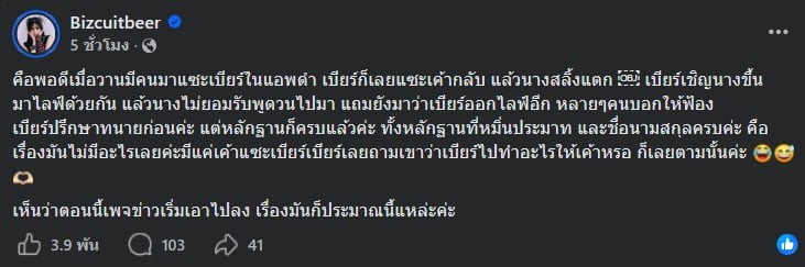 ซึ่งต้นเรื่องเกิดจากคอมเมนต์เชิงแซะที่ถูกส่งมา ทำให้ เบียร์ ตอบโต้กลับ ก่อนสถานการณ์จะบานปลายจนมีการเชิญคู่กรณีขึ้นมาเคลียร์กันแบบสดๆ