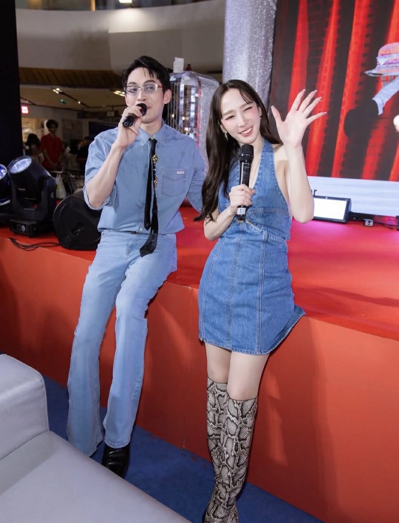 ครั้งนี้มาในสไตล์สุดชิค ผสมความเท่ และ ความแซ่บได้อย่างลงตัว ด้วยเดรสยีนส์สั้นดีไซน์คล้องคอ เผยผิวขาว และ ช่วงไหล่สวยสะดุดตา