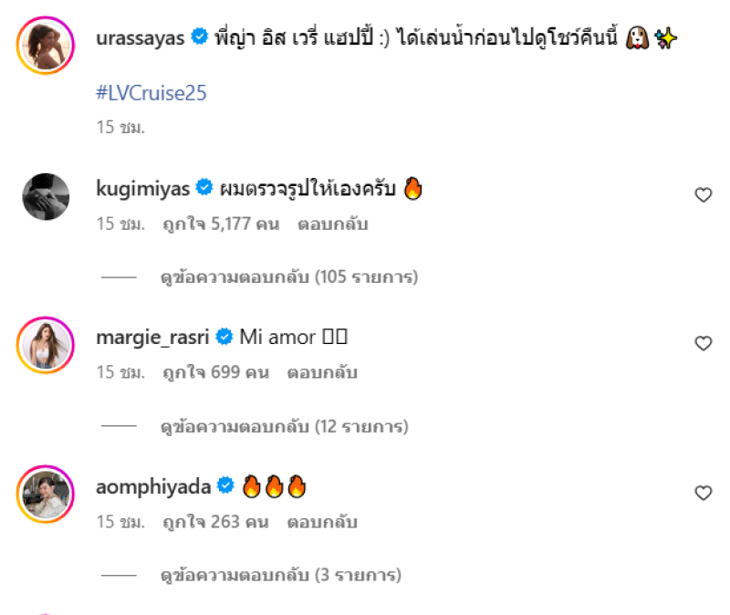 งานนี้ ทำเอาเพื่อนๆในวงการ ต้องเข้ามาคอมเมนต์กันสนั่น และว่าที่เจ้าบ่าวในอนาคต อย่าง ณเดชน์ คูกิมิยะ ถึงขั้นเข้ามาคอมเมนต์ว่า ผมตรวจรูปให้เองครับ บอกเลยว่าดูเหมือนจะหวงแฟนสุดๆไปเลยจ้า