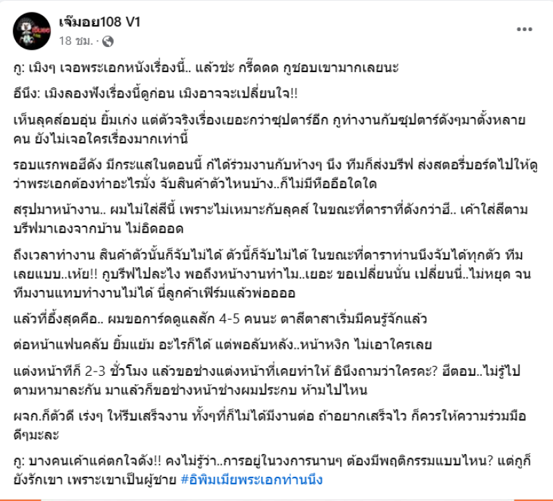 เมื่อวันที่ 24 พ.ค. 67 ที่ผ่านมา ทางเพจดัง อย่าง เจ๊มอย108 V1 ได้ออกมาเปิดประเด็นถึงพระเอกหน้าใหม่คนหนึ่ง โดยได้โพสต์พร้อมระบุข้อความว่า