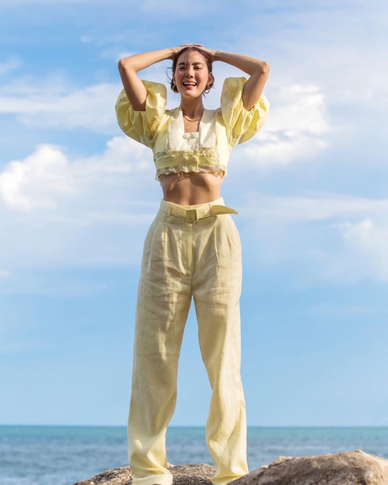 มีอยู่ครั้งหนึ่งลองดู เทสต์ดูใส่เอวลอยนิดเดียวเองนะ ร้องไห้แล้วเอามือเข้ามาปิดแบบนี้ หม่ามี้ใส่อย่างนี้ออกจากบ้านไม่ได้นะคะ ทำไมอ่ะลูก มันเห็นพุงพุง แต่เขาไม่เคยเห็นแม่ถ่ายคอนเทนต์เลยนะ (หัวเราะ)