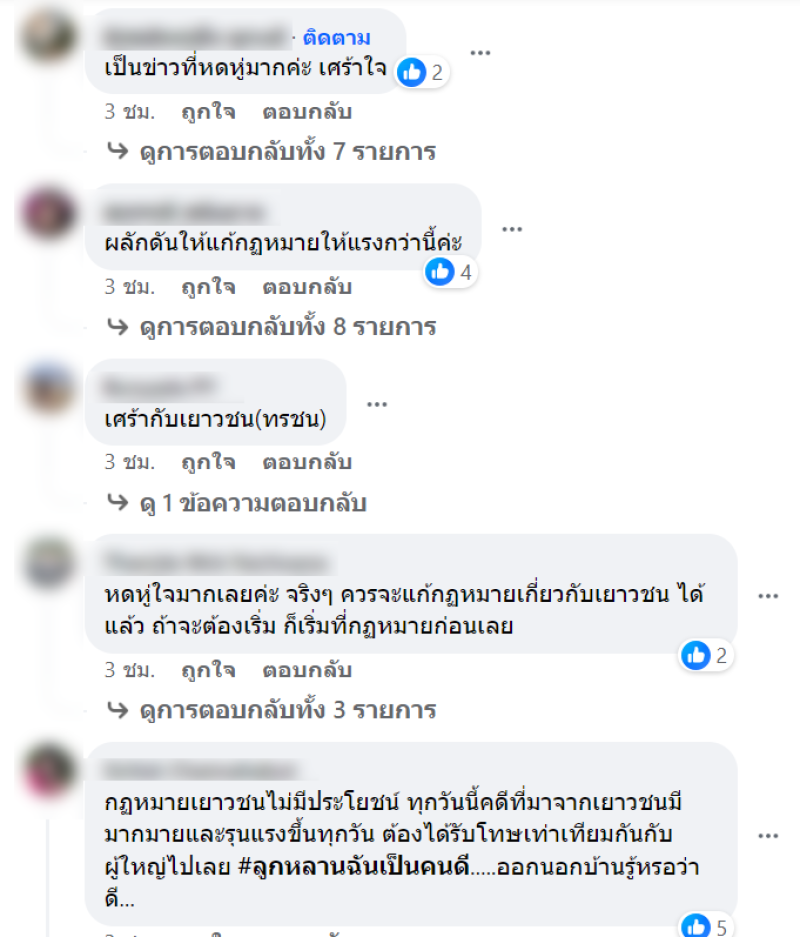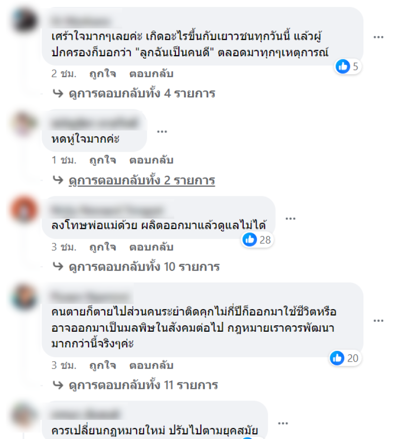 งานนี้ ได้มีชาวเน็ตจำนวนมาก เข้ามาคอมเมนต์กันจำนวนมาก อาทิ เศร้าใจมากๆเลยค่ะ เกิดอะไรขึ้นกับเยาวชนทุกวันนี้ แล้วผู้ปกครองก็บอกว่า ลูกฉันเป็นคนดี ตลอดมาทุกๆเหตุการณ์,ลงโทษพ่อแม่ด้วย ผลิตออกมาแล้วดูแลไม่ได้,ควรเปลี่ยนกฏหมายใหม่ ปรับไปตามยุคสมัย เป็นต้น