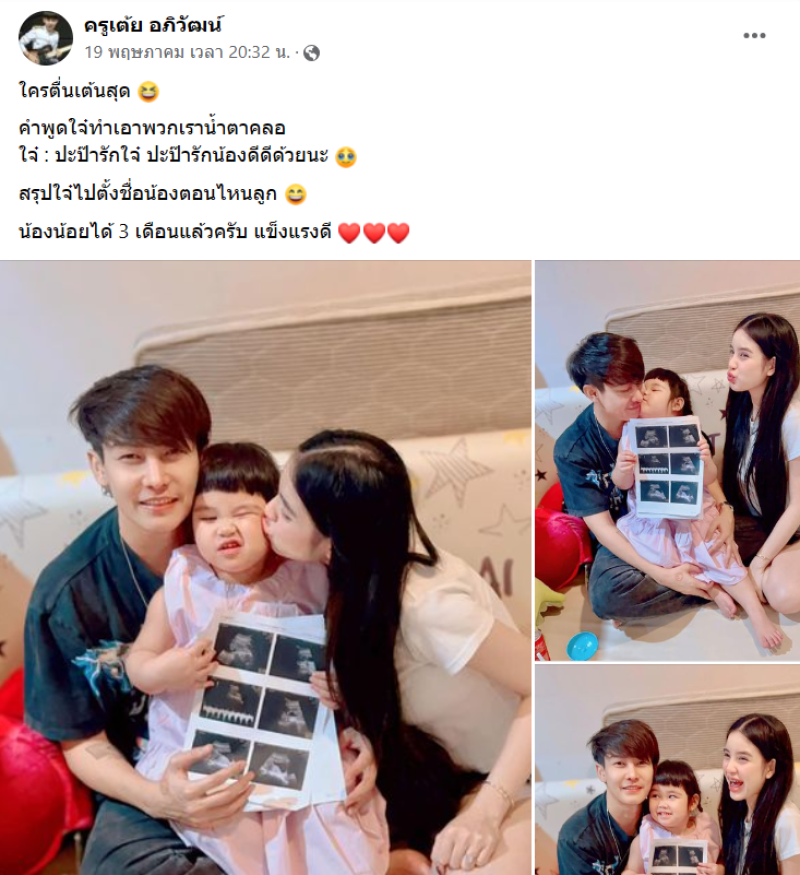 จากกรณที่ก่อนหน้านั้น ทางนักร้องหนุ่ม อย่าง เต้ย อภิวัฒน์ หรือ หลายๆคนรู้จักกันในนามครูเต้ย ที่ก่อนหน้านั้นได้ออกมาปนะกาศข่าวดีกับภรรยา อย่าง ขนม ศศิกานต์ และลูกสาวน้องตั้งใจ ที่ได้เผยว่ากำลังมีน้องคนที่2แล้วนั่นเอง