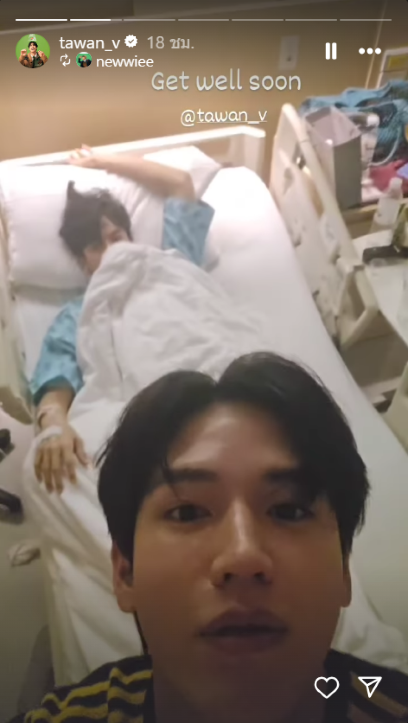 โดยขณะที่เพื่อนรัก อย่าง นิว ฐิติภูมิ ได้ไปเยี่ยม และได้เผยเตนอนบนเตียงผู้ป่วยผ่านทางสตอรี่ไอจี พร้อมกับใส่แคปชั่นว่า Get well soo