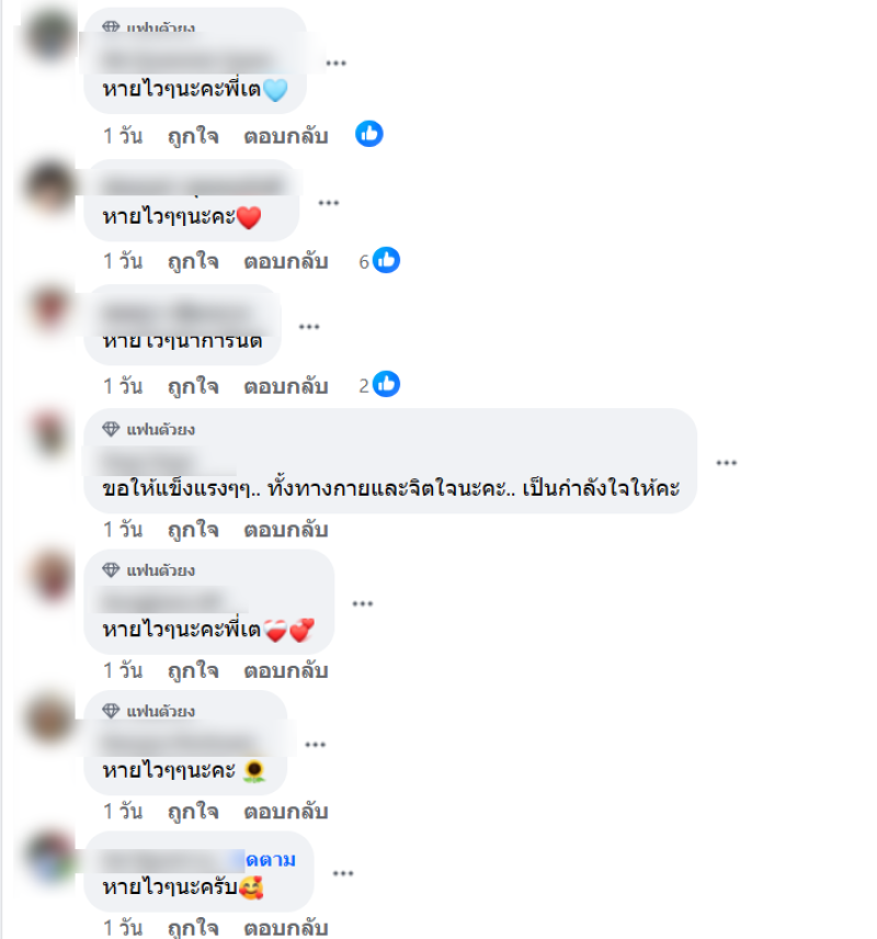 หลังจากทางค่ายประกาศไป ได้มีแฟนคลับเข้ามาแสดงความห่วงใย และส่งกำลังใจให้หายป่วยเร็วๆ จำนวนมาก