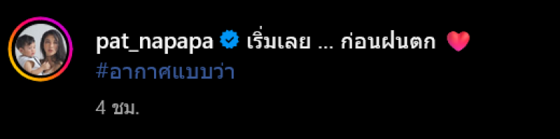 เเต่เมื่อวันหยุดล่าสุดได้พาลูกชายไปโซนหัวหิน บอกเลยว่าภาพไปเที่ยวเซ็ทนี้ไม่ทำให้ทุกผิดหวัง กับชุดบิกินี่สีแดงทำเอาแสบตากันทั้งหาด ซึ่งเธอได้โพสต์ภาพ พร้อมแคปชั่นว่า "เริ่มเลย... ก่อนฝนตก อากาศแบบว่า" ท่ามกลางชาวเน็ตที่คอมเมนต์ชื่นชมมากมาย