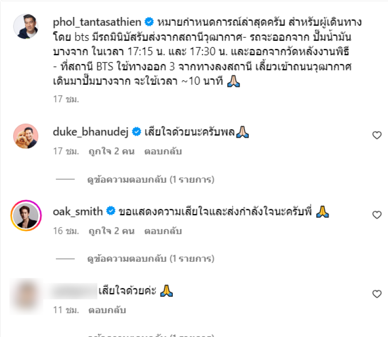 ท่ามกลาง เพื่อนดาราในวงการและแฟนๆได้เข้ามาแสดงความเสียใจด้วยกันจำนวนมาก