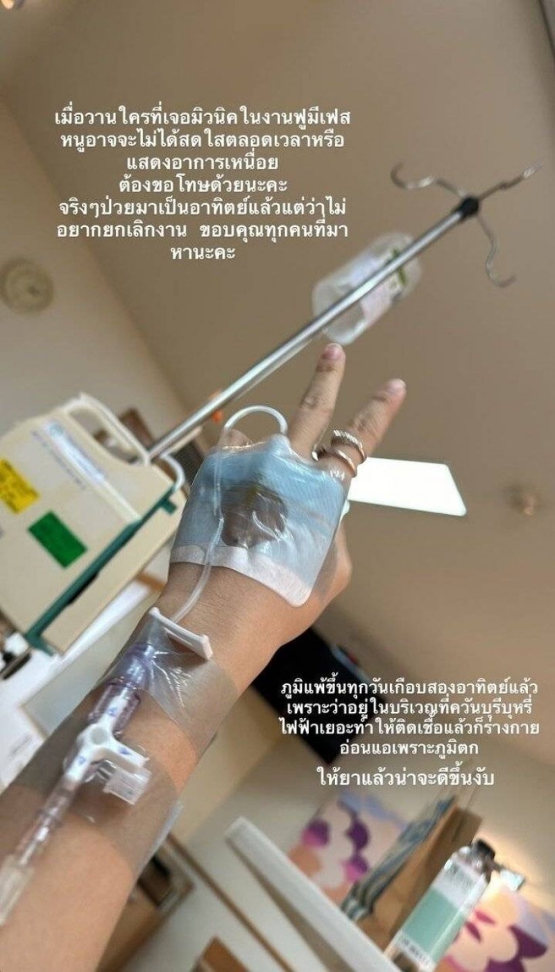 เรียกได้ว่า เป็นดารา-นักร้อง อย่าง มิวนิค นันท์นภัส เลิศนามเชิดสกุล อดีตสมาชิก BNK48 ที่ได้โพสต์ว่ากำลังพักรักษาตัวที่โรงพยาบาลนั่นเอง โดยได้ถ่ายภาพตัวเองชูสองนิ้วพร้อมกับสายน้ำเกลือ และระบุข้อความว่า เมื่อวานใครที่เจอมิวนิคในงานฟูมีเฟส หนูอาจจะไม่ได้สดใสตลอดเวลาหรือ แสดงอาการเหนื่อย ต้องขอโทษด้วยนะคะ จริงๆ ป่วยมาเป็นอาทิตย์แล้วแต่ว่าไม่อยากยกเลิกงาน ขอบคุณทุกคนที่มาหานะคะ