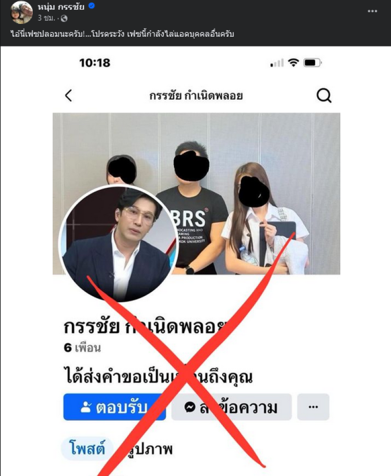 เรียกได้ว่าเป็นพิธีกรชื่อดังมากความสามารถอย่าง หนุ่ม กรรชัย ที่ล่าสุดได้ออกมาโพสต์ข้อความเตือนผ่านเฟซบุ๊ค หลังมีผู้ที่ไม่หวังดีได้ปลอม Facebook มีชื่อว่า กรรชัย กำเนิดพลอย พร้อมเขียนข้อความไว้ว่า ไอ้นี่เฟซปลอมนะครับ!...โปรดระวัง เฟซนี้กำลังไล่แอดบุคคลอื่นครับ