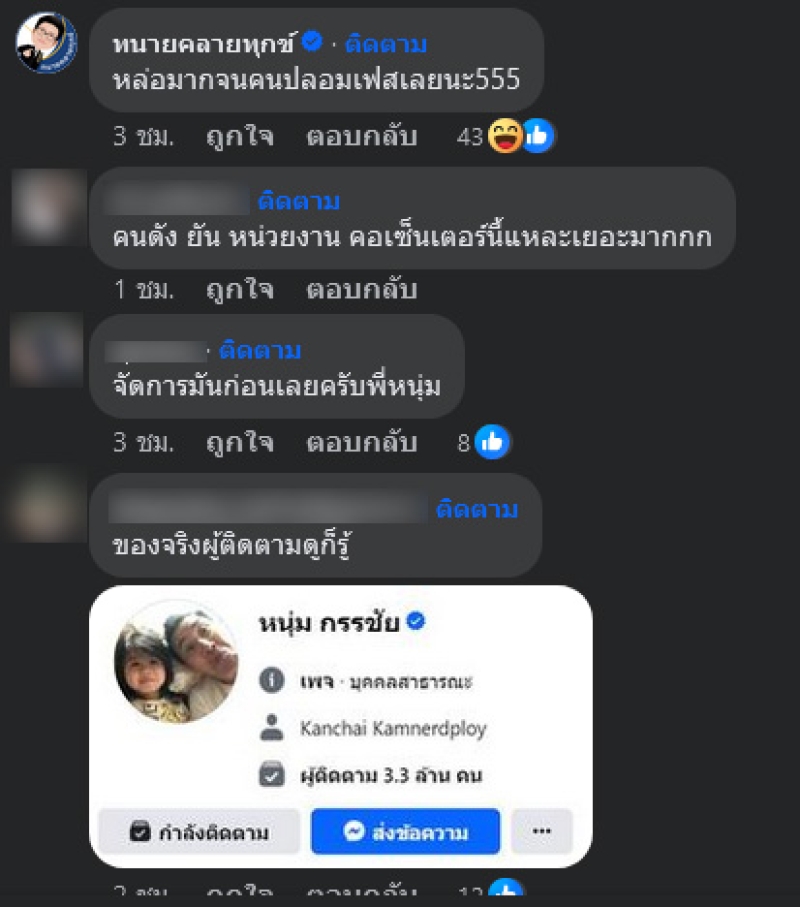 หลังจากที่ หนุ่ม กรรชัย ได้โพสต์เตือนออกไปก็มีชาวเน็ตเข้ามาคอมเมนต์มากมาย อาทิ จัดการมันก่อนเลยครับพี่หนุ่ม,กรรชัยเพื่อนไม่คบ มี 6 คน 5555,สงสัยอยากย้ายที่นอน,จัดเลยค่ะคุณหนุ่ม เป็นต้น