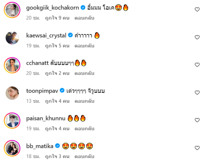 ท่ามกลาง เพื่อนในวงการและแฟนๆเข้ามาแสดงความคิดเห็นกันจำนวนมาก อาทิ อือหื้อออ,อื้มมม โอเค,ไม้เรียวในมือสั่น ถ้าเจอนะ...ตีเรย,สดใสจังครับพี่พลอย,คุณพลอยยยยยยยย,สวยจังเลยครับ เป็นต้น