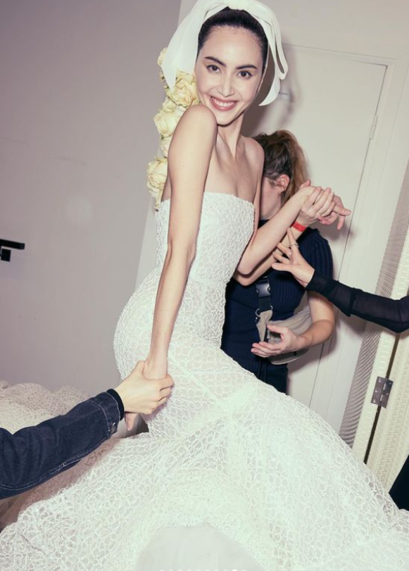 ล่าสุด สาวใหม่นั้น ได้ไปเดินแบบเวทีที่ดังมากๆ และเป็นอีกหนึ่งของความภาคภูมิใจ โดยเป็นนักแสดงสาวไทยที่ได้ได้รับเกียรติในการเดินชุดฟินาเล่ปิดโชว์ให้กับแบรนด์ Giambattista Valli Spring/Summer Couture 2024 ปารีส ฝรั่งเศส บอกเลยว่า เป็นชุดสีขาวที่สวยมาก และปักไปด้วยลวดลายต่างๆ สมแล้วที่เป้น ลูกรักของ Giambattista Valli จริงๆ
